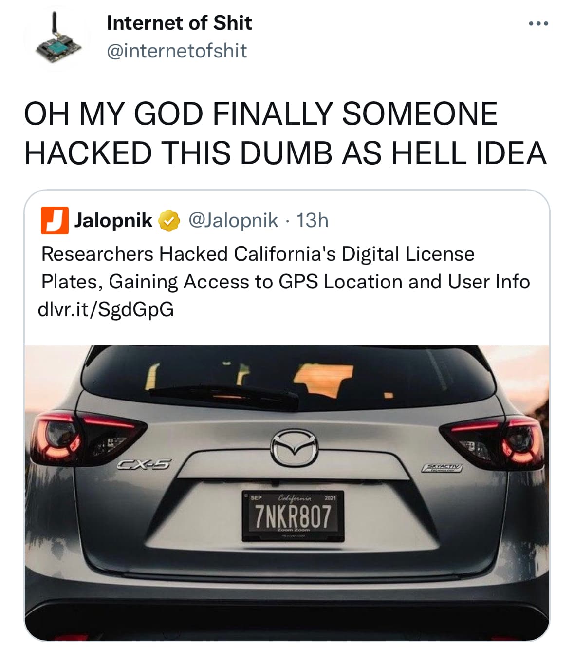 This is the first time I’ve even heard about the license plate themselves. Who thought that was a good idea in the first place?