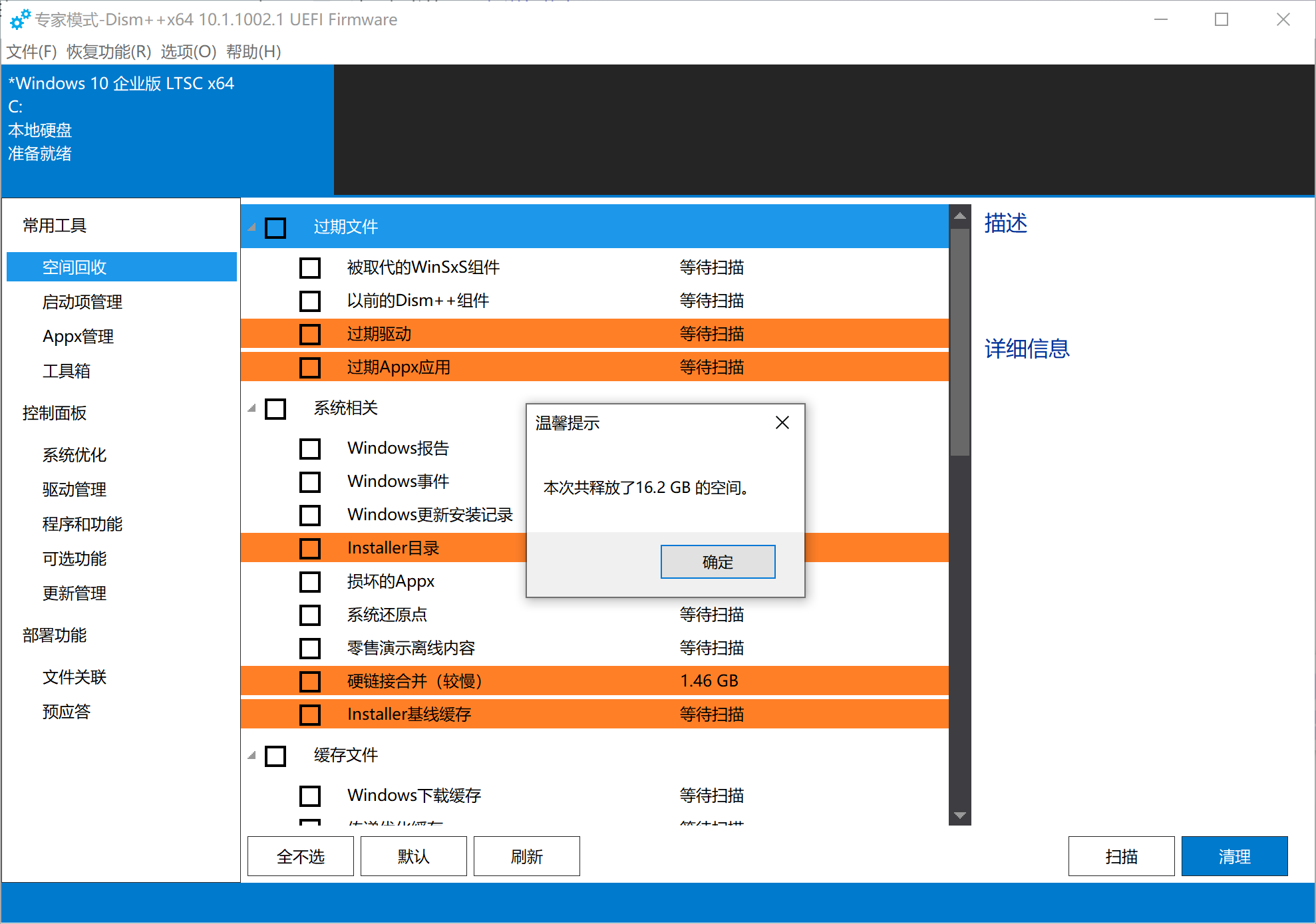 If I want to save more data I can also enable CompactOS to compress the system, but I didn’t do that.