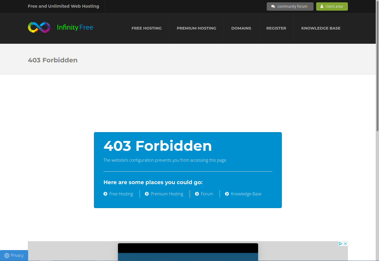 Oh yes I know the problem when you make a file containing the word “chat” it gives a 403 Forbidden because chat scripts are not allowed in InfinityFree you may have to rename it.