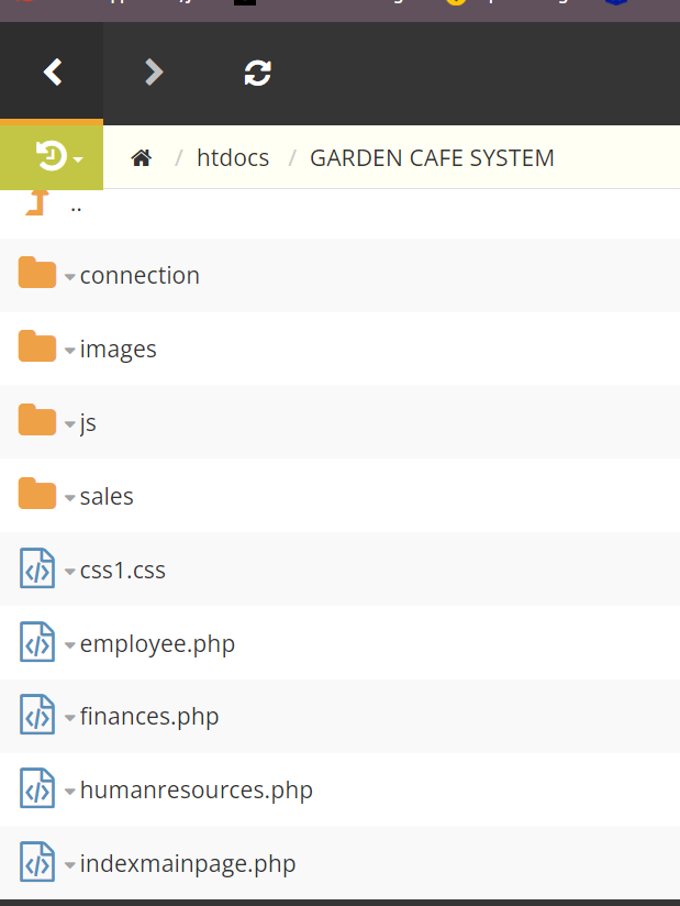Well, since Linux servers are case-sensitive, the final redirection URL should be GARDEN%20CAFE%20SYSTEM/indexmainpage.php (note the %20s).