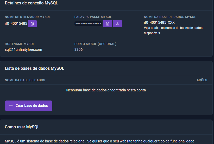 Due to problems with infy.uk I changed the address, but I imagined the database wouldn’t be affected.