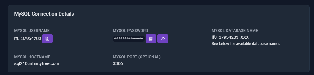 If you go into your dash board, and then to the “mysql databases” section, you’ll see something like this: