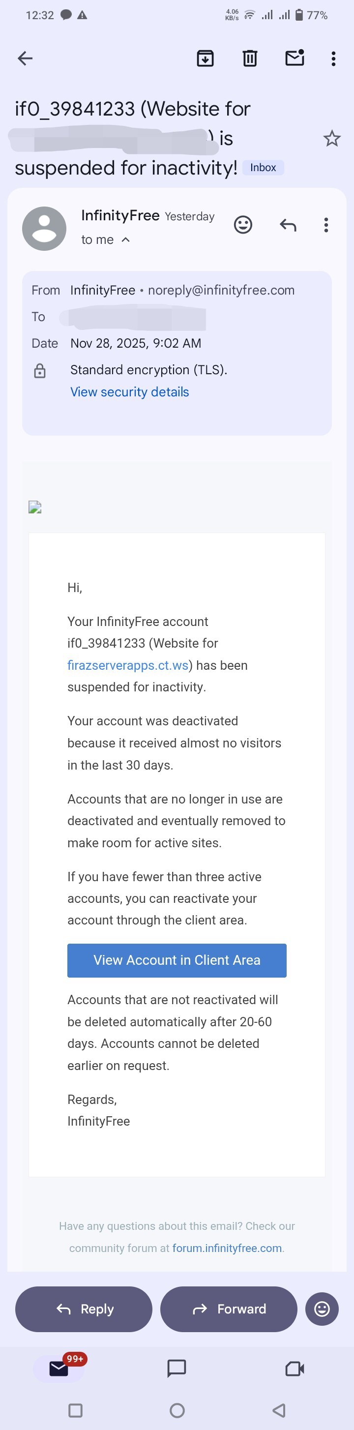 Although it says “infinityfree.com” in the title, it’s not actually sent from us. It’s sent from the upstream reseller platform, and the content in it is usually outdated.