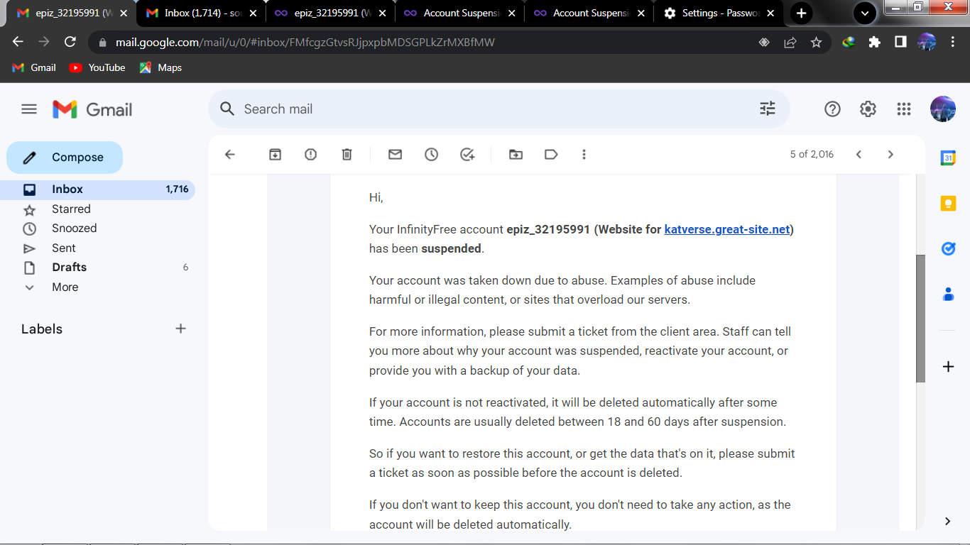 please i dont do anything wrong, my account got suspended because of abuse. I’m not adding illegal content to my website. Please reactivate my account, i need it for my final exam.