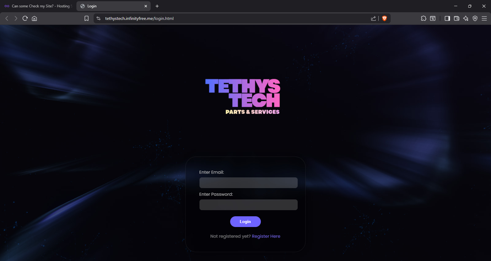 The first request to your website (http://tethystech.infinityfree.me/?i=1) redirect me to the URL http://tethystech.infinityfree.me/login.php].