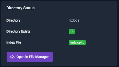 Please check that you have an index.html or index.php file in the htdocs folder. This is case sensitive, so can’t have capitals.