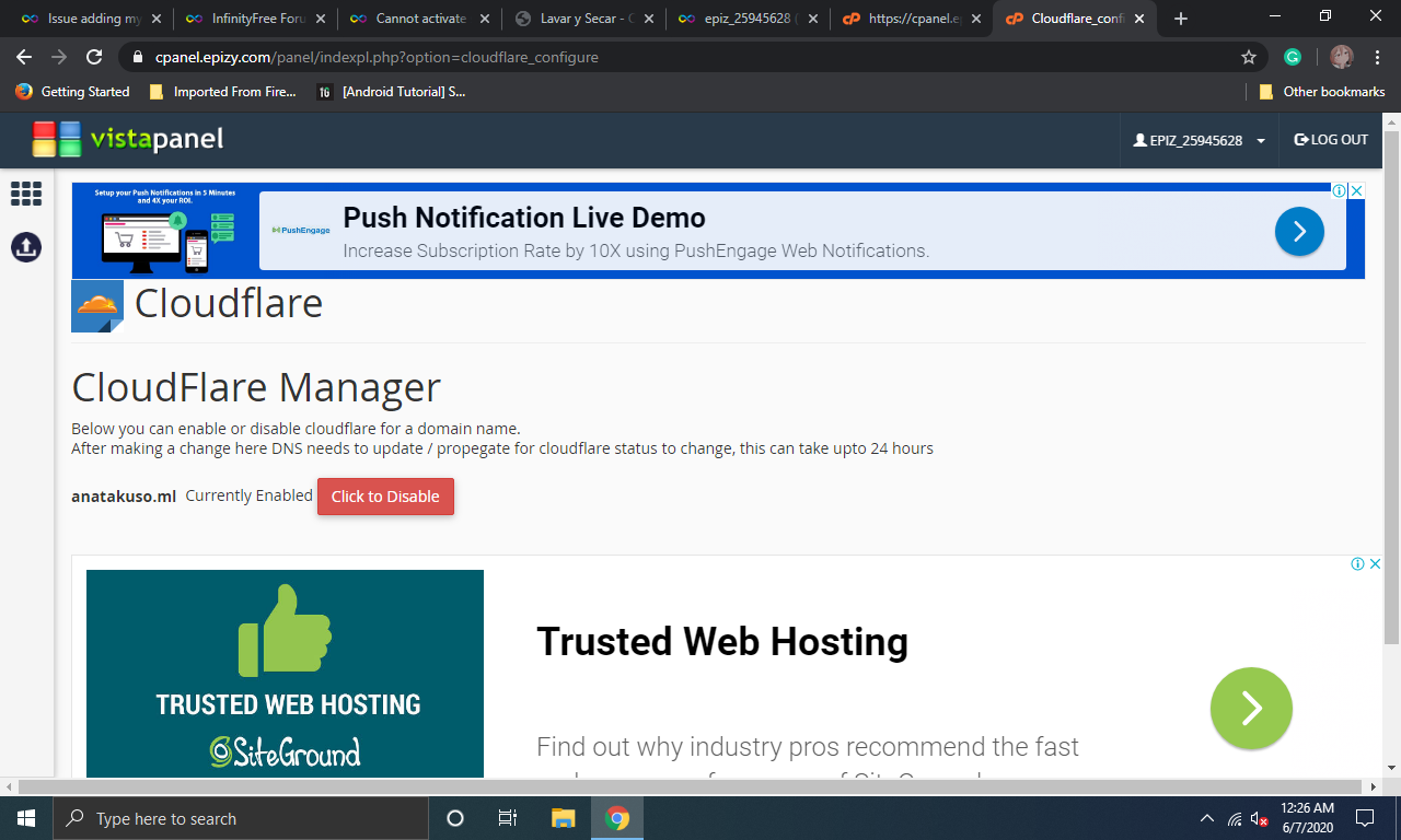 And when it gets enabled. Go to Cloudflare official website. Log in with your email address (the email address that you use in Infinityfree account), if you don’t know your password, simply click on Forgot your password and enter your email. You will receive a confirmation link from your Gmail account, use it to generate a new password. After that, log in to your account with the new password.