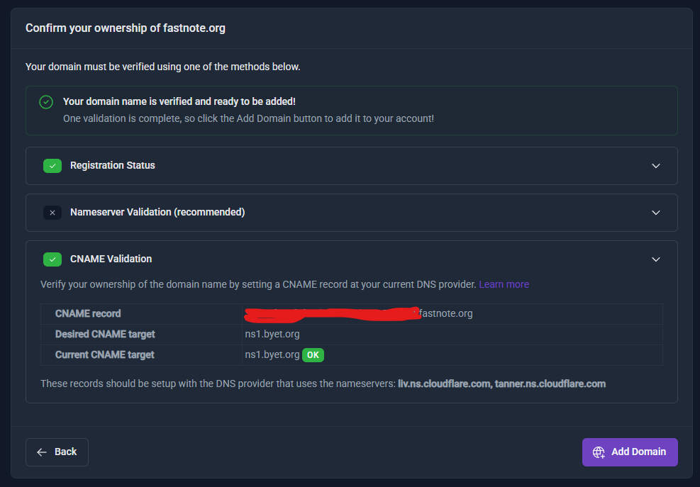 I am using CNAME verification method.