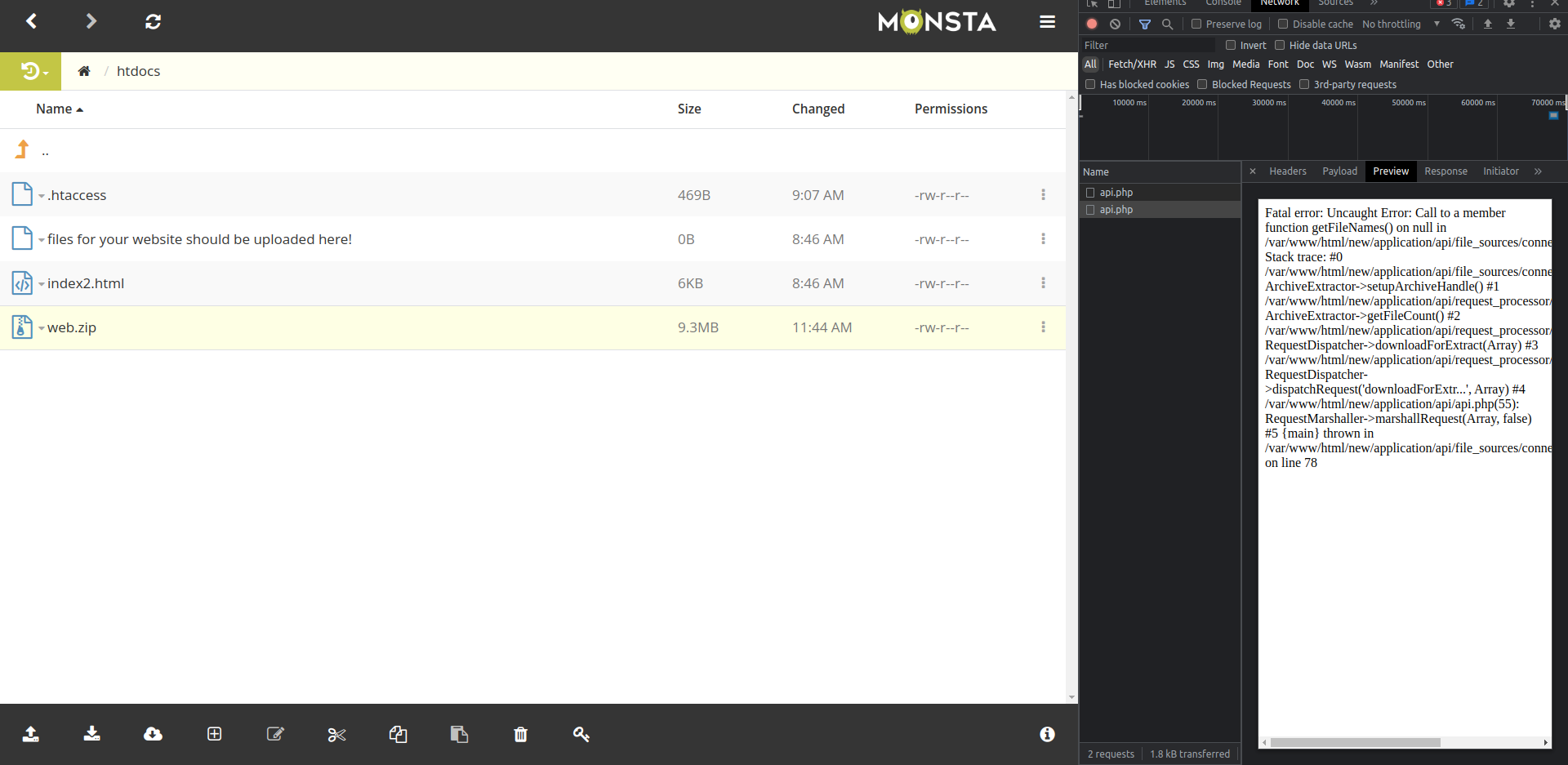 Fatal error: Uncaught Error: Call to a member function getFileNames() on null in /var/www/html/new/application/api/file_sources/connection/ArchiveExtractor.php:78 Stack trace: #0 /var/www/html/new/application/api/file_sources/connection/ArchiveExtractor.php(84): ArchiveExtractor->setupArchiveHandle() #1 /var/www/html/new/application/api/request_processor/RequestDispatcher.php(685): ArchiveExtractor->getFileCount() #2 /var/www/html/new/application/api/request_processor/RequestDispatcher.php(95): RequestDispatcher->downloadForExtract(Array) #3 /var/www/html/new/application/api/request_processor/RequestMarshaller.php(98): RequestDispatcher->dispatchRequest(‘downloadForExtr…’, Array) #4 /var/www/html/new/application/api/api.php(55): RequestMarshaller->marshallRequest(Array, false) #5 {main} thrown in /var/www/html/new/application/api/file_sources/connection/ArchiveExtractor.php on line 78