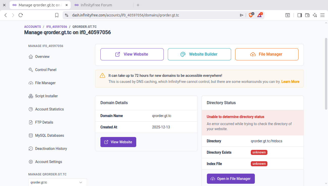 Now, it turns back to same error again. Is InfinityFree on maintenance or upgrading process?