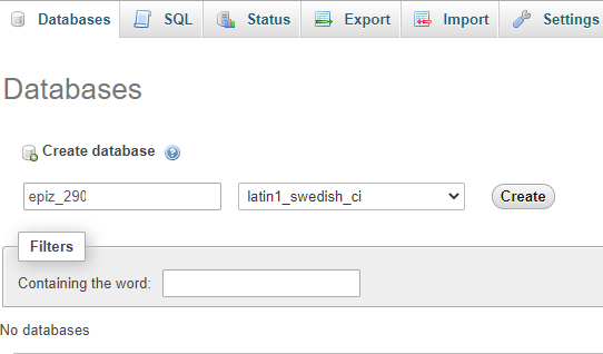 I try to create a database in Phpmyadmin but when i click on Create it doesnt do anything, nothing loads, no error, nothing. (see screenshot)