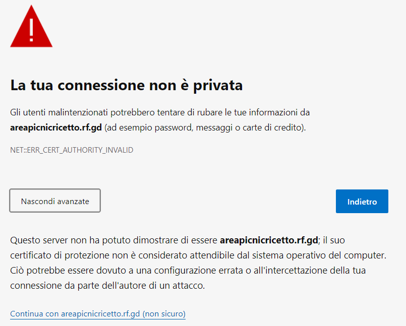 Please install a certificate from GoGetSSL or ZeroSSL. You are using a self-signed certificate, and the error is common.