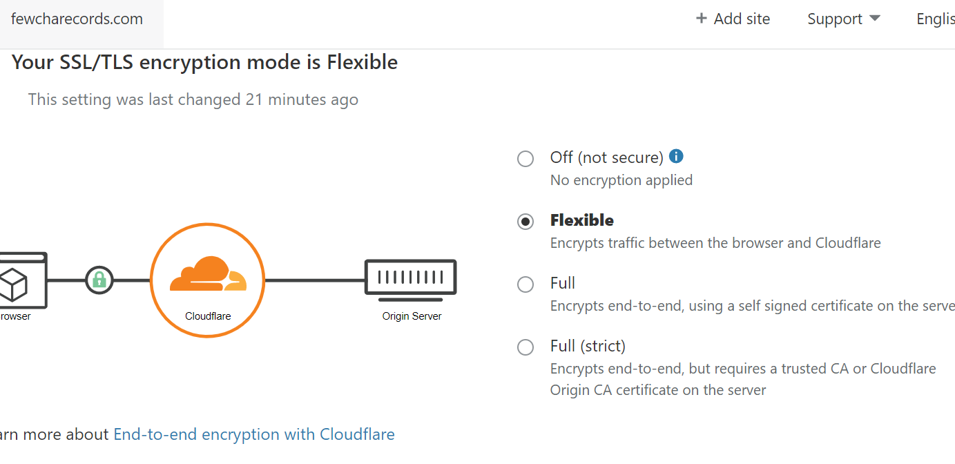 Set it to Flexible and enable Always Use HTTPS and Always rewrite HTTP then clear your browser caches or try to logging-in to wp-admin using incognito mode if you don’t want to clear your browsing data.
