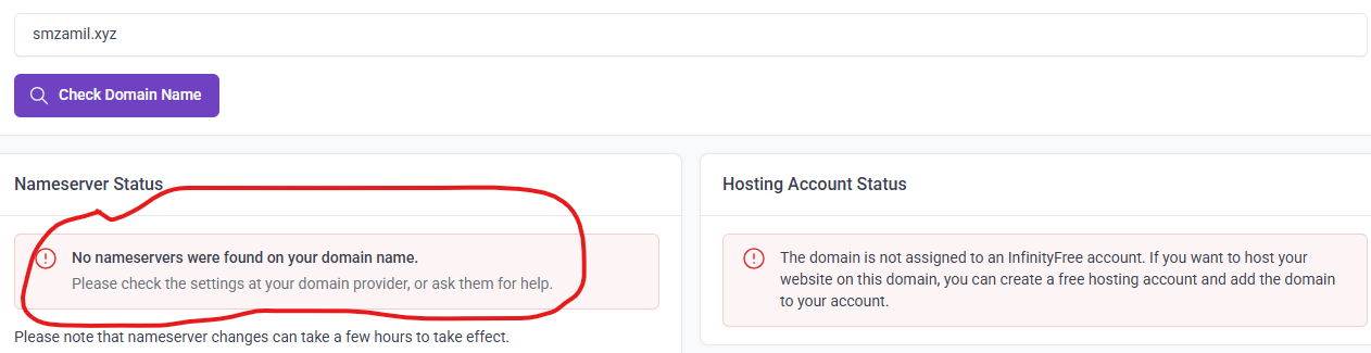 Verification: The nameservers (ns1.infinityfree.com and ns2.infinityfree.com ) have been fully propagated worldwide, confirmed by external DNS tools.
