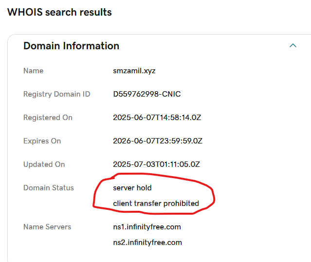 Could you please manually check the status of my domain smzamil.xyz and clear any locks so I can successfully create my free hosting account?