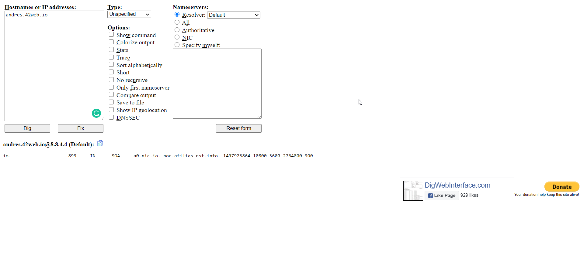 *at least doesn’t return : Name or service not known