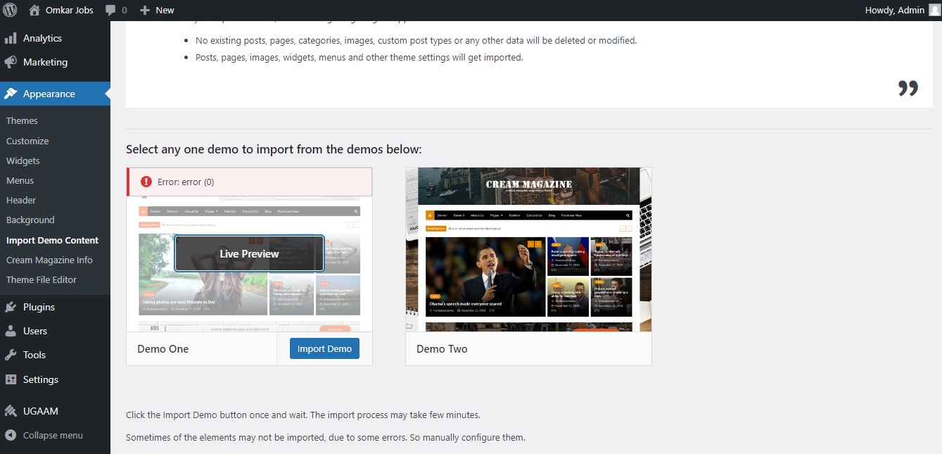 I already used these theme. but it’s not working. when i am importing demo. I can see Error 0