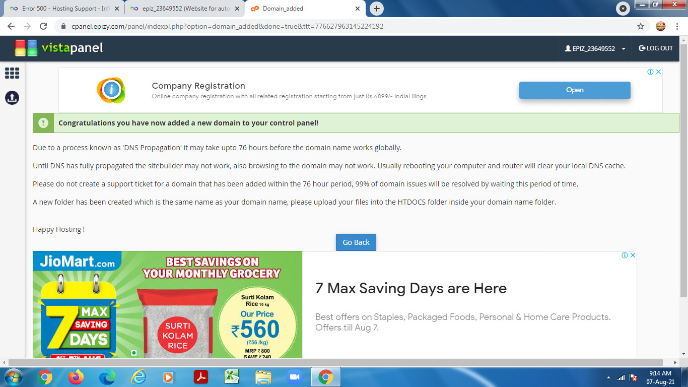 Also, you donât have to delete the domain due to a 500 error, you only have to delete the files.