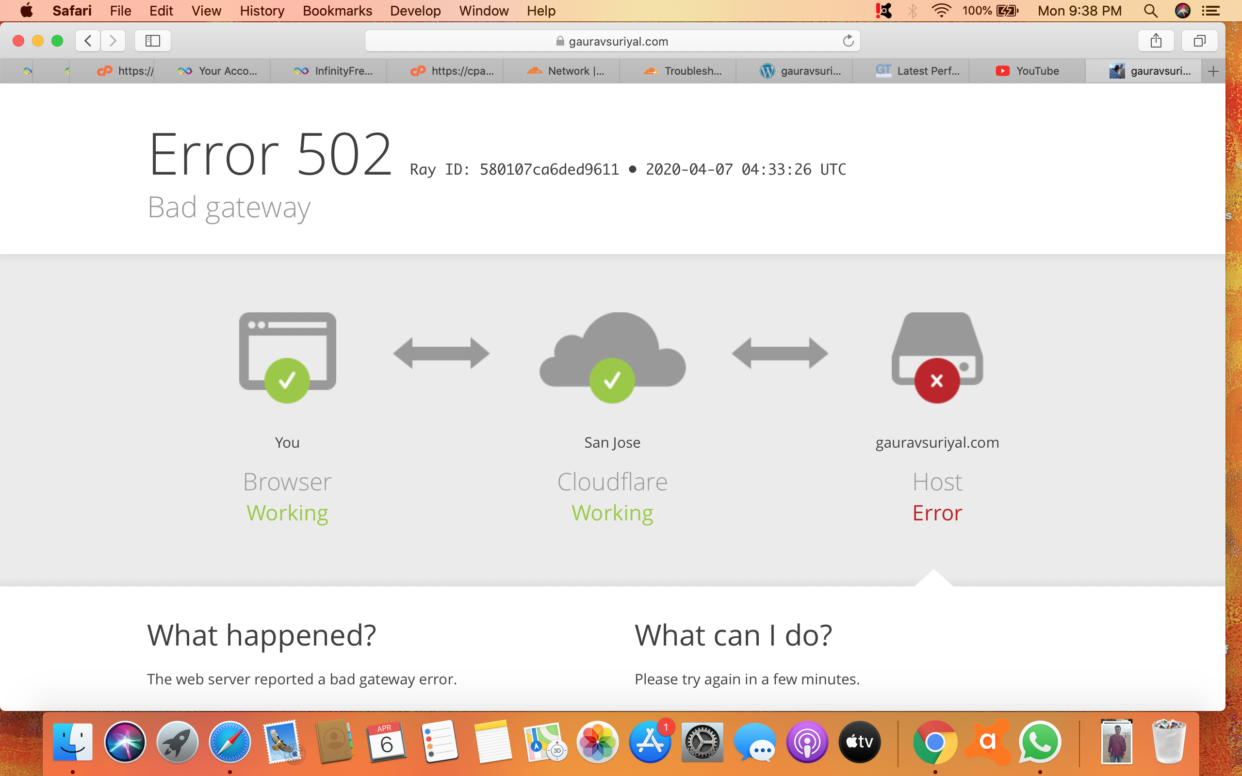 Facing Error 502(Bad Gateway) , Unknown Error 520 since 4-5hours. Cpanel not loading and my website showing error. This must be an issue with the server. plz fix it.