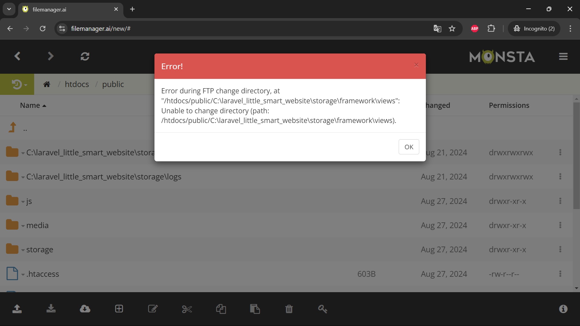 The problem is that the file path has a backslash in it, which is an invalid path character and then Monsta goes crazy.