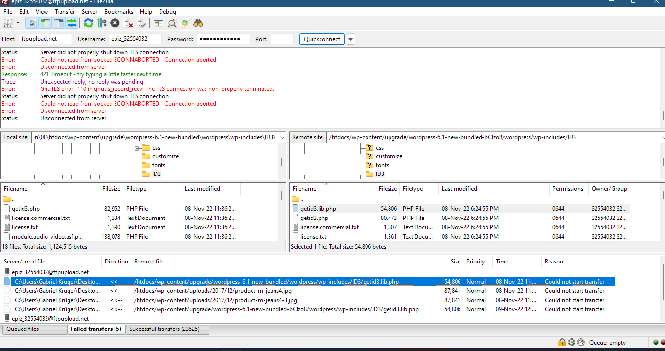 I’m trying to backup my website hosted on Infinityfree but there’s 2 specific files that are impossible to download and the name is “getid3.lib.php” and another one is an image, are these 2 specific files important or can I ignore them? If no, how can I download if I’m getting this error “Could not start transfer” on Filezilla