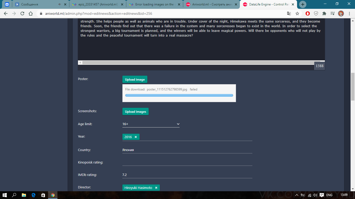 When you try to upload a picture through the admin panel on the site, an error occurs when uploading the picture to the server.