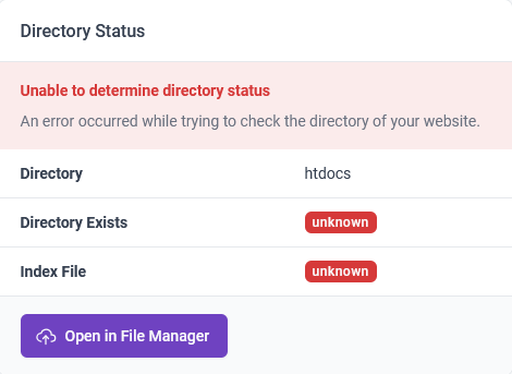 I checked again and I see that the FTP server was down for around 20 minutes earlier today. Since both the file manager and the Directory Status card in the client area use FTP under the hood, those will also not have worked.