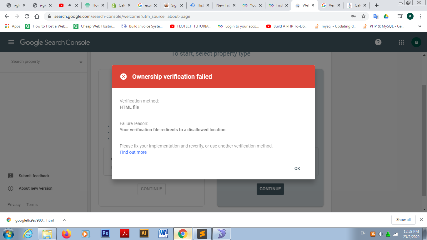 You need to upload your websiteâs verification file to your domainâs htdocs folder before you can click on âVerifyâ.