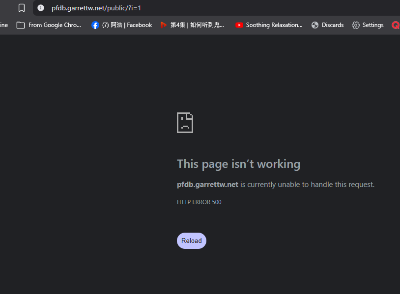 Thanks for your reply. After disabling the root .htaccess and accessing http://pfdb.garrettw.net/public/ I still get the same empty-body 500 error from openresty.