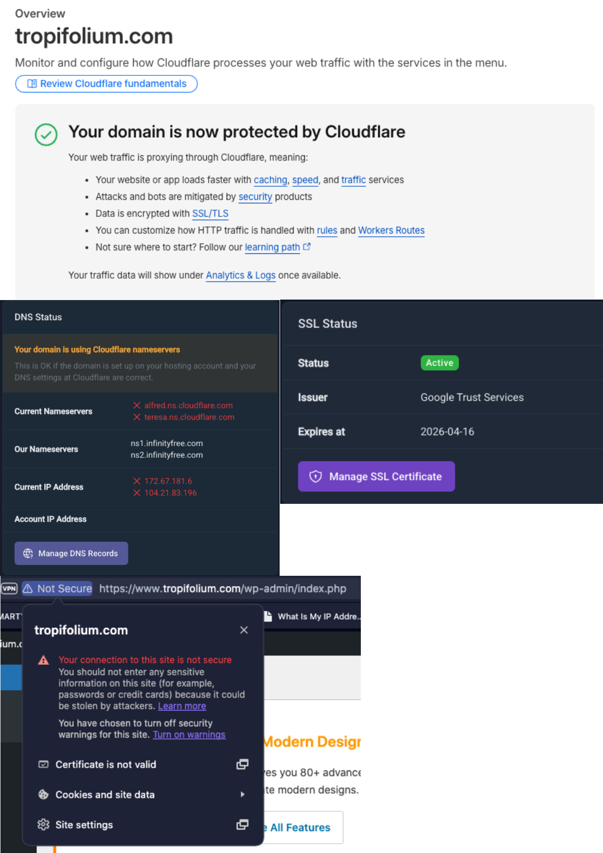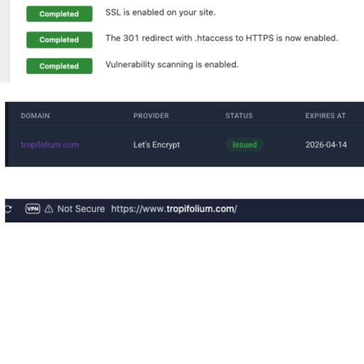 Note that you will also need to configure your website’s Website URL to be https://tropifolium.com/ instead of http://tropifolium.com/ (with https, not http).
