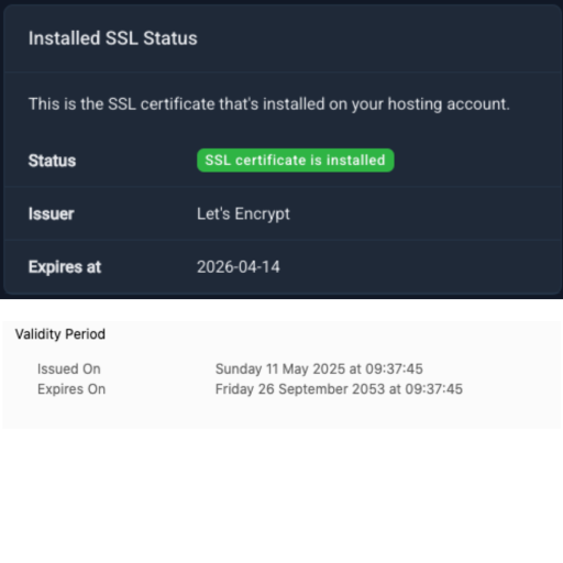 KangJL was referring to the origin server’s certificate. It’s the default, everyone has one, meaning your own installed was unsuccessful or not found. I also not sure but the system says you have Let’s Encrypt. Assuming you followed the video to the t and installed SSL successfully and waited for hours already, I would first try to disable/uninstall all the plugins and remove WP’s own cache. Temporarily remove any redirects or any force https. Then wait a few minutes by visiting your site on a pure WP without plugins. If you are successful (SSL read successfully by the browser) re-install your plugins one by one, revisiting your site each time with one new plugin, Elementor being the last. Hopefully, we can pinpoint the problem and post here if there are new development.
