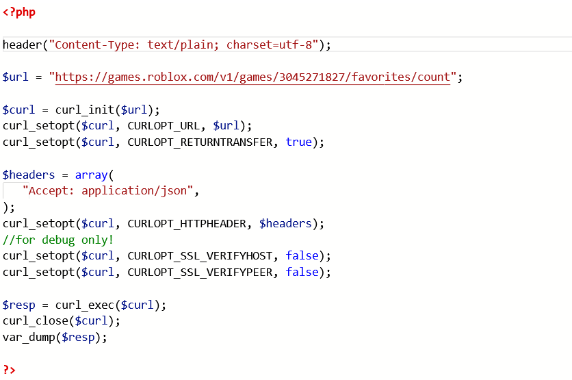 Use $favorites_number = file_get_contents("https://api.bloxstargames.cf/gba/v1/favorites.php"); and assign it to a variable, such as favorites_number, like I did above. This is easier, but not really preferred.