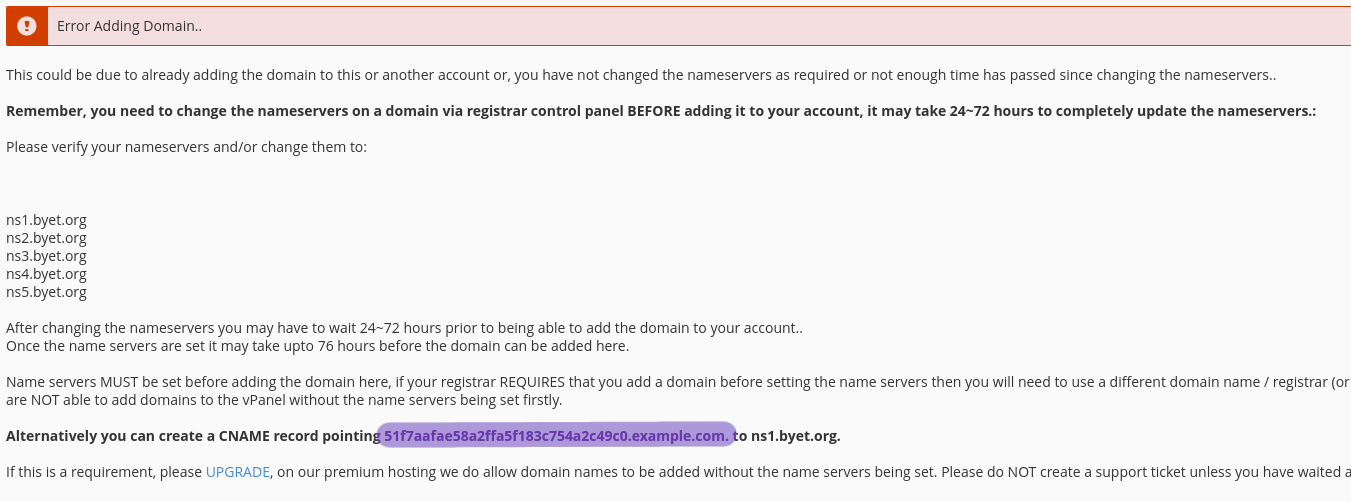 Step 4: Try to add the domain again