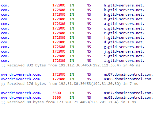 Because overdrivemerch. com is not added to the system here, nor does NS refer to this hosting