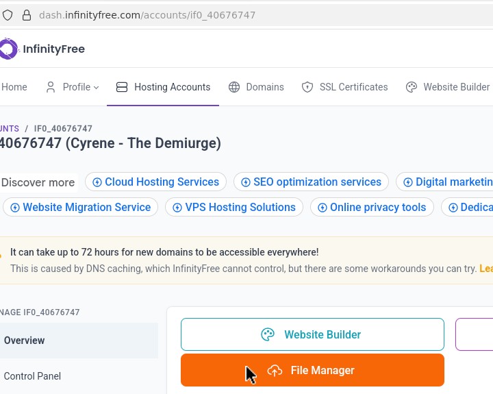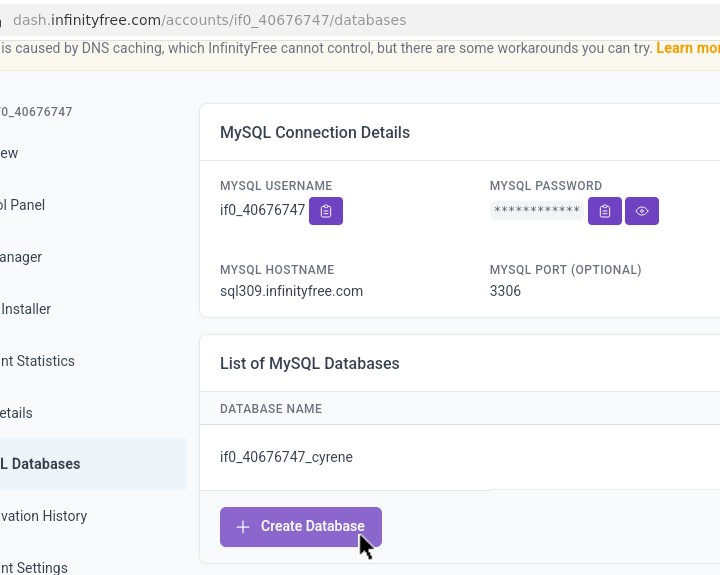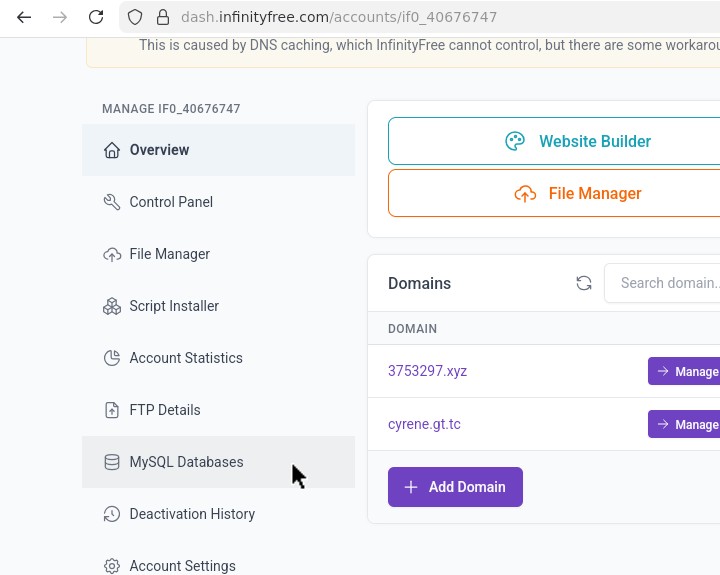 The MySQL database is ready. Go back to the File Manager tab, navigate to the