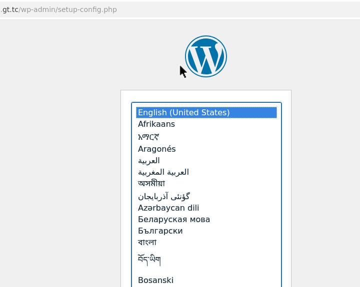 Now you’re ready to install WordPress. Open your website in a new tab, and you should see a WordPress setup page. Select your language, and click Continue.