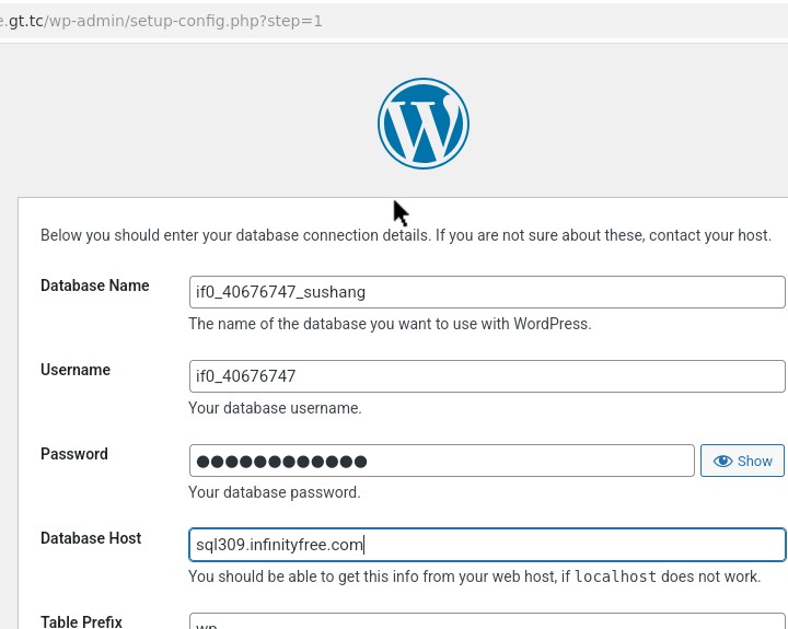 Consult the client area to provide MySQL database credential details for WordPress setup, and click Submit.