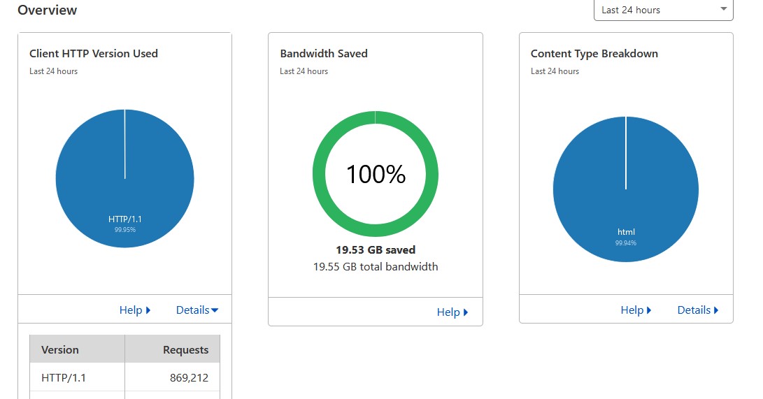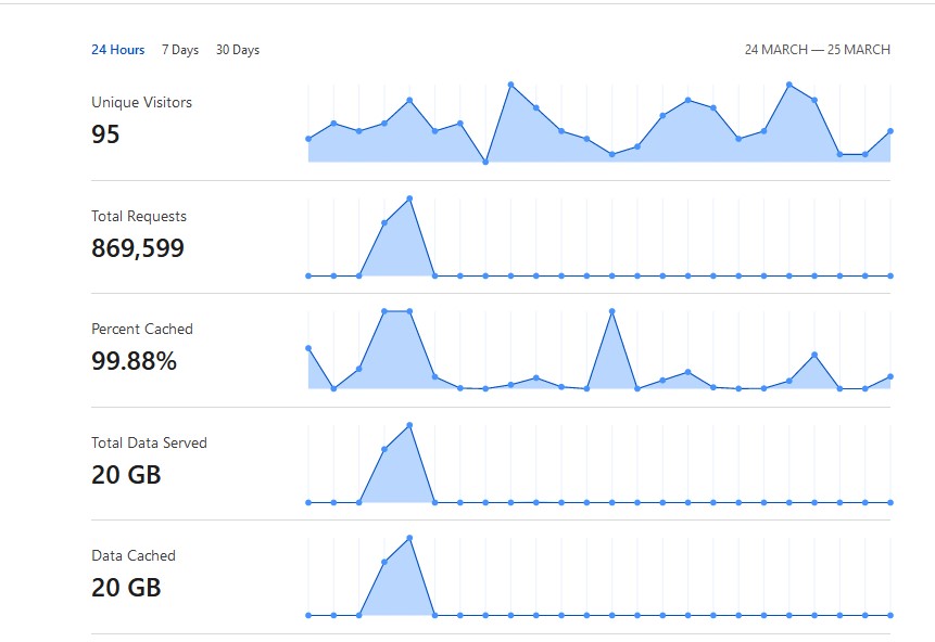 Analytics from CF (nearly a million requests and generated 20GB of traffic)