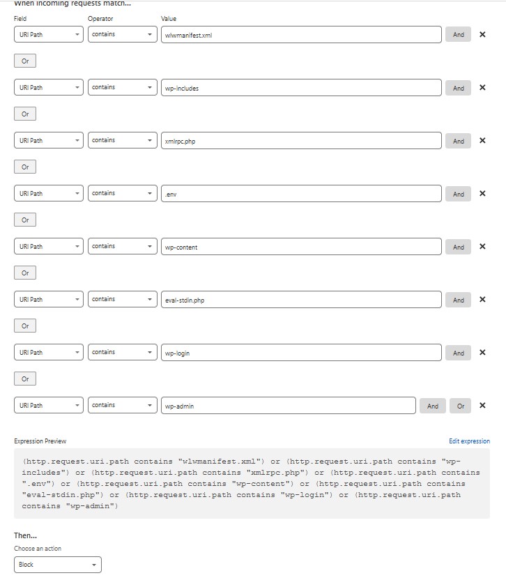 (http.request.uri.path contains "/wp-")