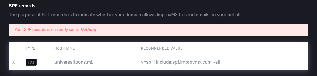 hello, i have a free account and i wanted a webmail and i tried to get it from improvmx.com but it says to add a TXT record with value. how can i set up that pls tell in SPF records