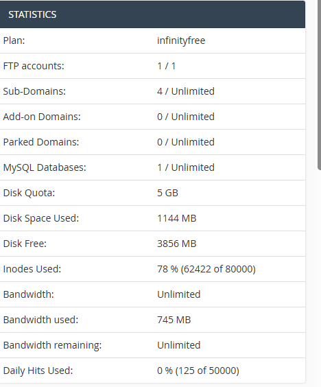 I’m currently using the InfinityFree hosting plan, and my account shows 78% inode usage (62,422 of 80,000). Despite being well below the inode limit, I’m unable to access the Softaculous App Installer from the control panel.