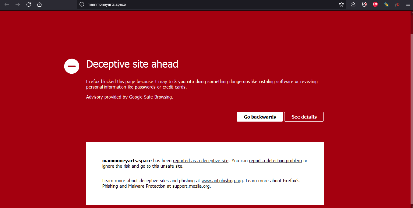 it says: *** UnKnown can’t find mammoneyarts.space: Non-existent domain