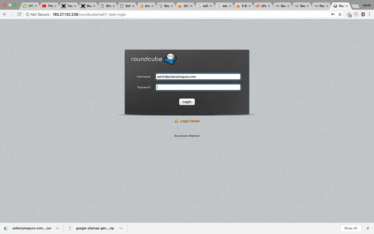 Yes I know. I have two websites accounts in the server, one of them is the epiz_22314401. There I have an email account: [email protected]. I cant login this email account in the roundcube.