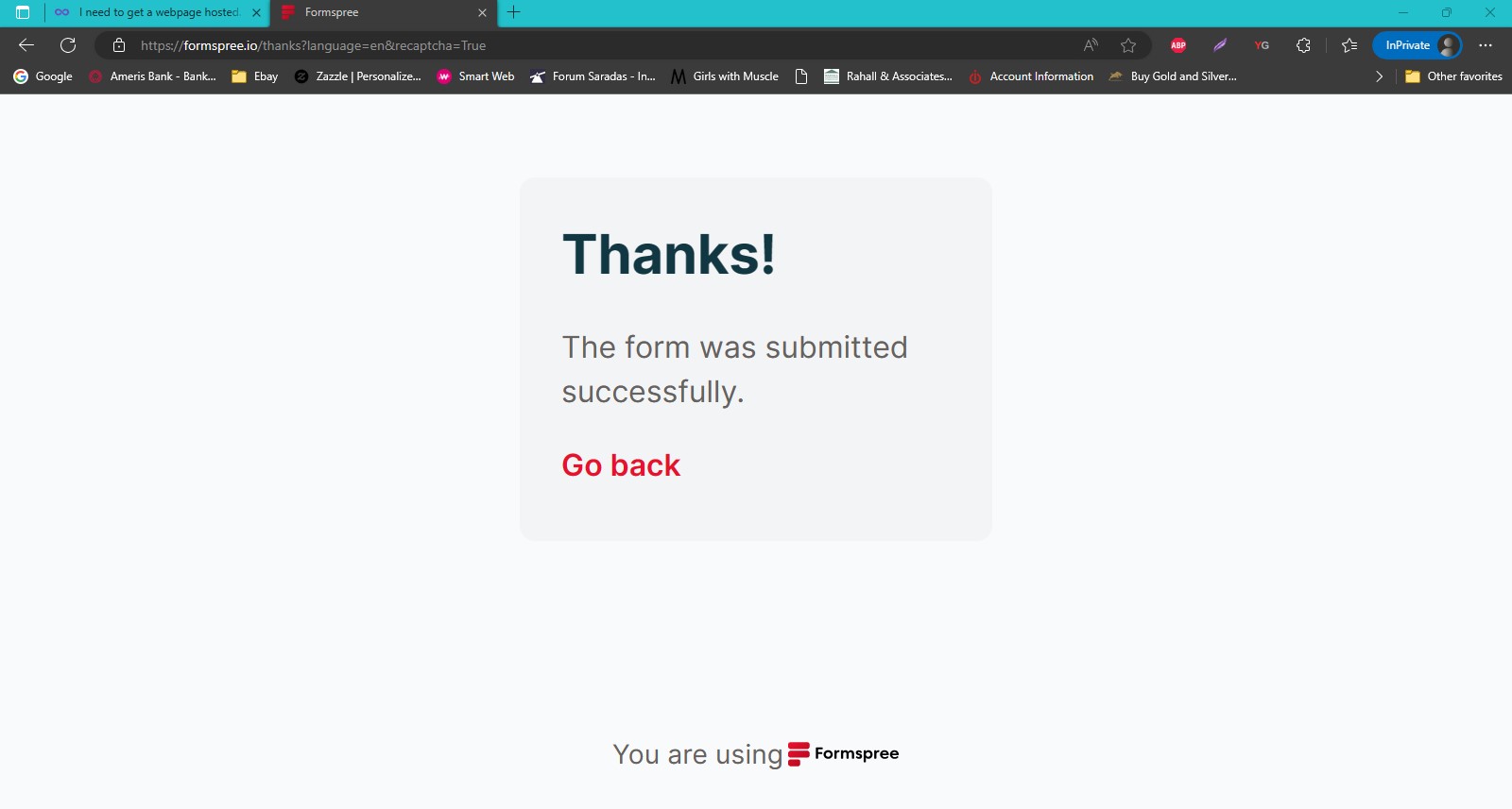 I noticed that when my webpage is opened in a browser with the updated code to the form in it, my completed form is submitted to Formspree. (file:///C:/Users/dcram/Downloads/About%20HTML/index.html)