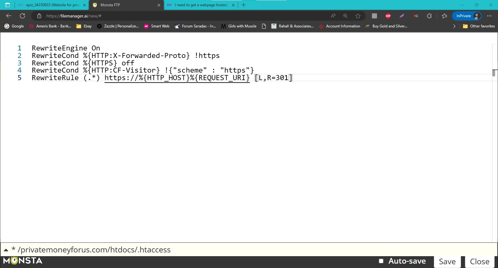 Okay. I created a new .htaccess file. I went to my domain’s htdocs folder, then created the new .htaccess file, and added the contents from the article to this file. It’s in privatemoneyforus.com/htdocs/.htaccess. Please comfirm with me whether I did this correctly. What are the next steps I must take once I’m done with this? Will I need to upload this file once again using the FileZilla app?