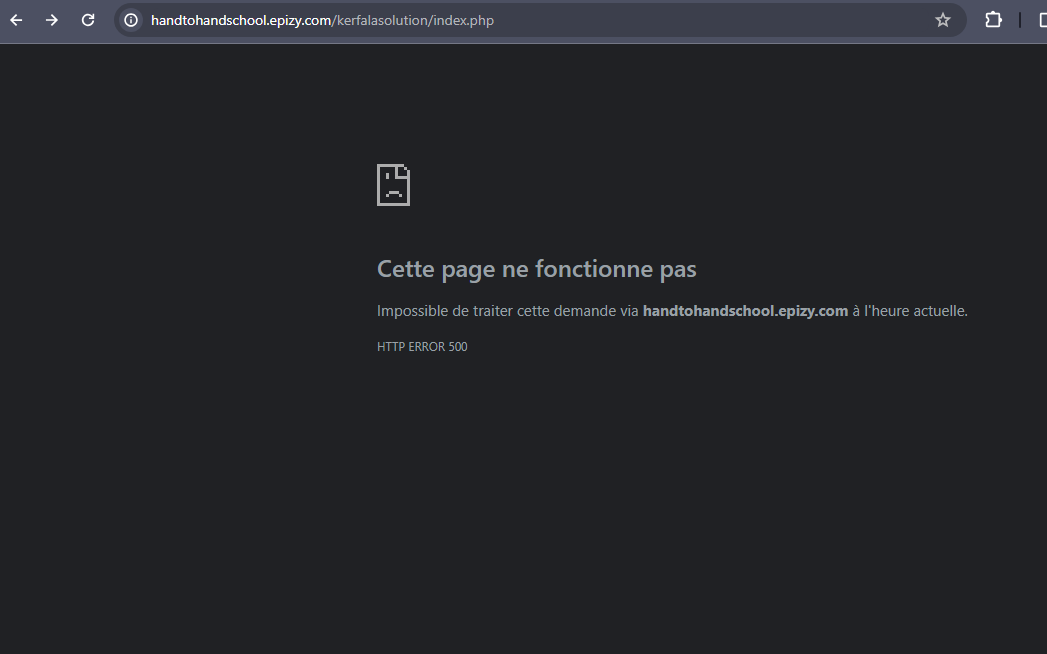 to host other projects in this project we have a php code and we have a database. So for access this project I have do the all configuration I use http://handtohandschool.epizy.com/kerfalasolution/index.php, in a Moshe index.php I can access this page normally without a problem but this page necessary to someone enter his identification after he can go at the page main but when I enter the information they show me error 500 this page is not accessible so when I test in local server there is not a problem there but when I come in the web server on line I have a problem there I donât know for what that way my code dontât a problem and database information is correctly given but I donât understand what is this problem.