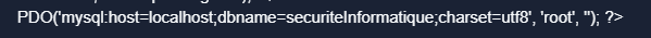 //$conn = new PDO('mysql:host=localhost;dbname=securiteInformatique;charset=utf8', 'root', '');