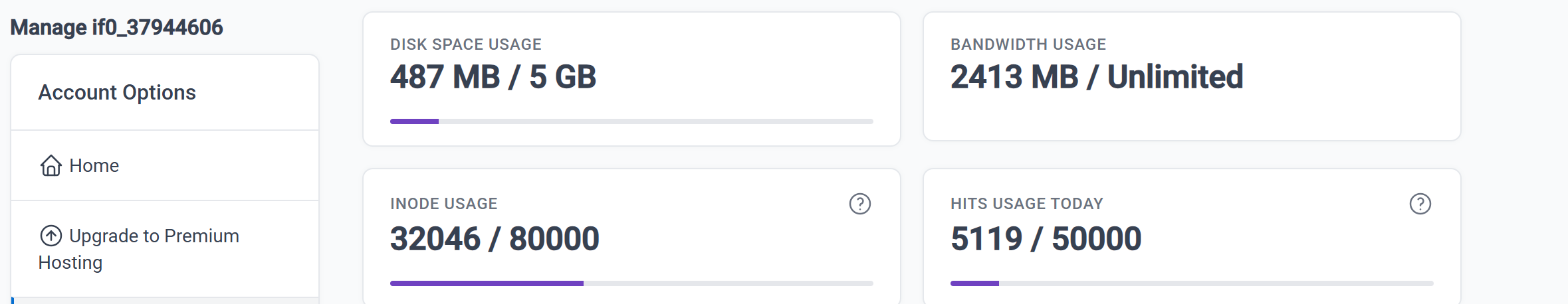 And sure enough trying to go to it takes me to InfinityFree’s suspended domain page. So the system isn’t broken, the account really is suspended. It’s just confusing because you no longer have your custom domain on the hosting account. However, the free subdomain is still there, and that’s likely exactly what happened. For whatever reason, traffic it received was enough to overload your account.