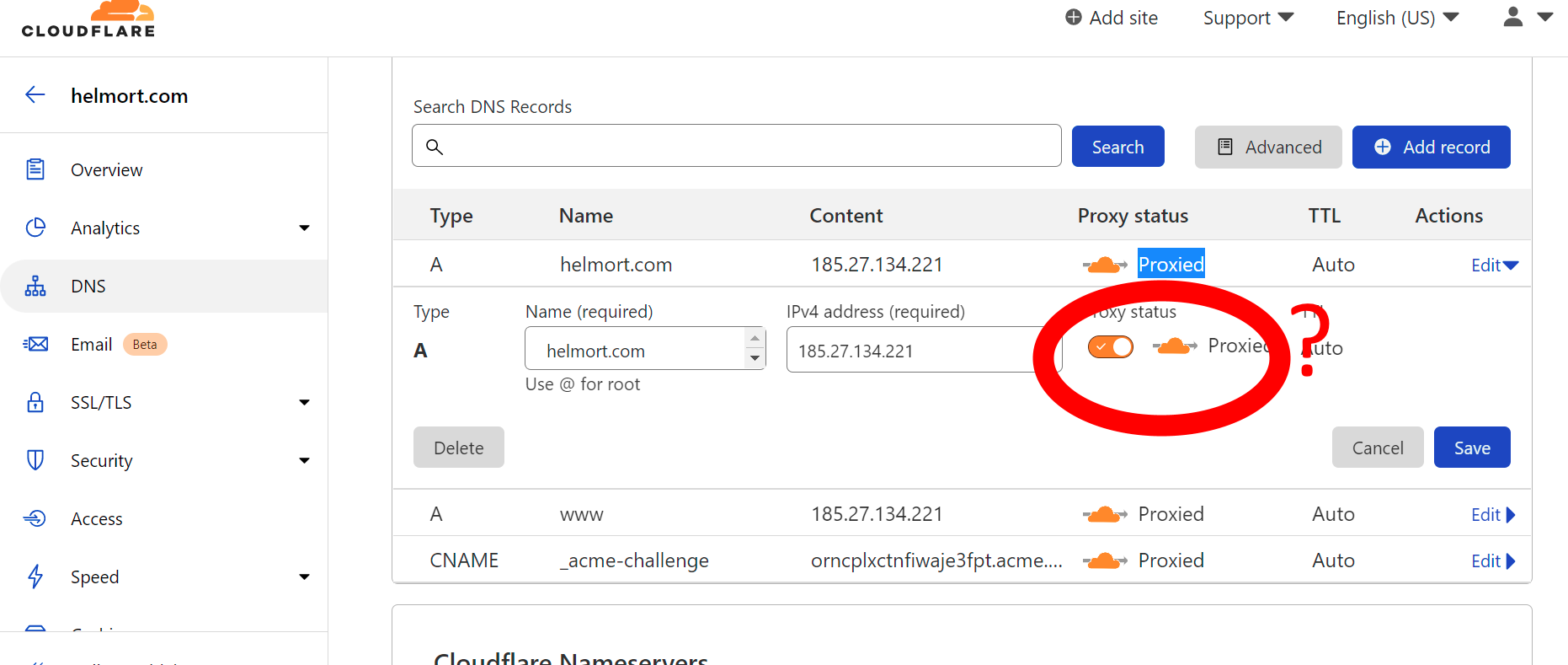 Hello to everyone. As I’ve mentioned many times, I’m not an expert, so small details can be difficult. Today, I’m having trouble upgrading my SSL certificate since this message appears when I make my request, and the true problem is that I’m not sure what to type in the empty spaces of CloudFlare DNS records; could you kindly assist me? Thank you very much!