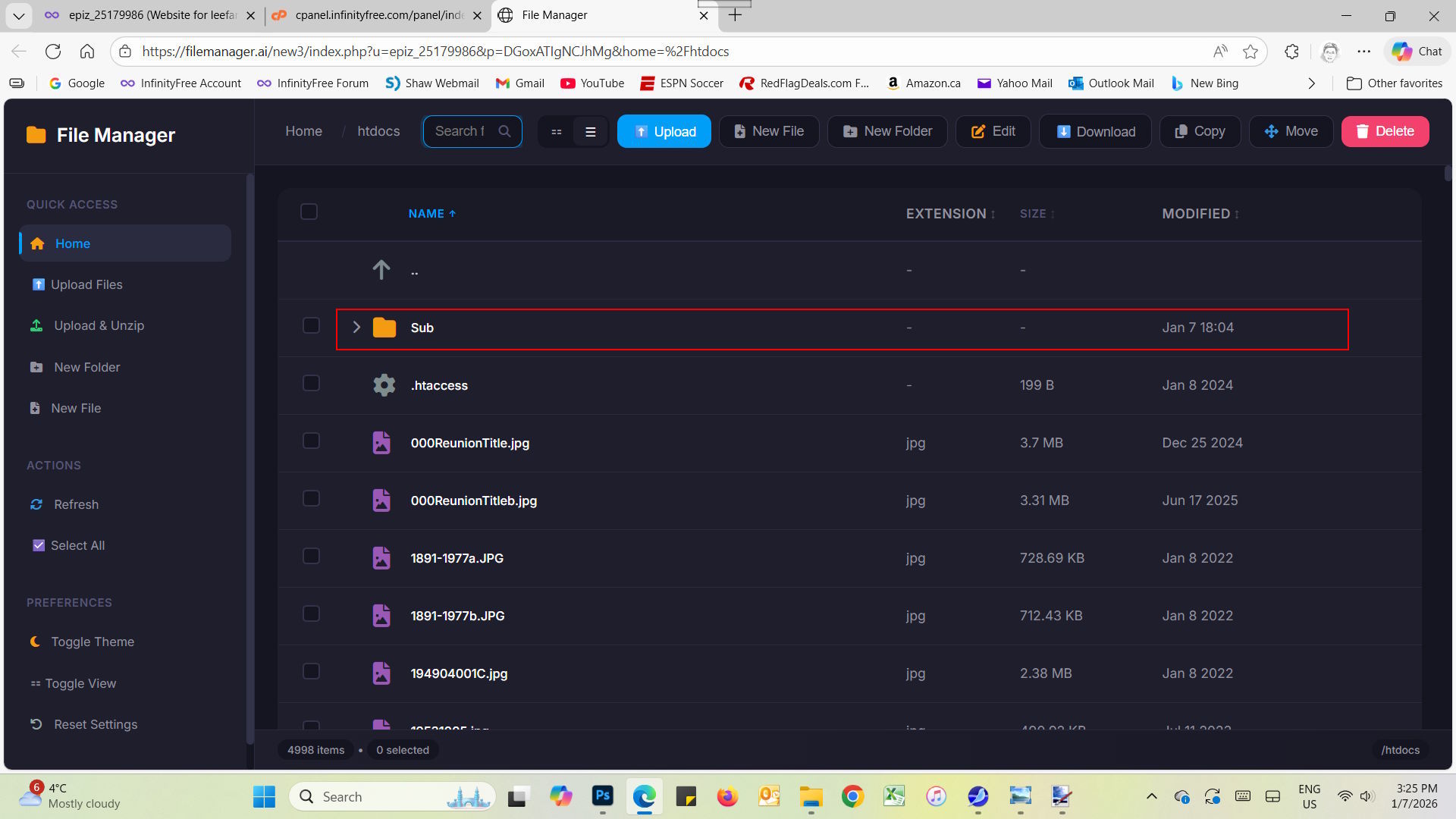 I also went to My infinityfree account File Manager noticed the total file number under htdocs folder also capped at 4998.